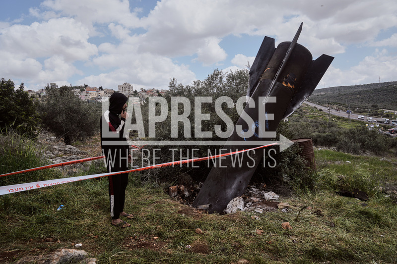 Frammento di un missile iraniano caduto nel villaggio di Kifl Haris in Cisgiordania