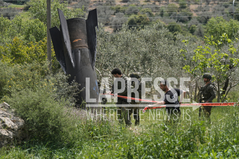 Frammento di un missile iraniano caduto nel villaggio di Kifl Haris in Cisgiordania