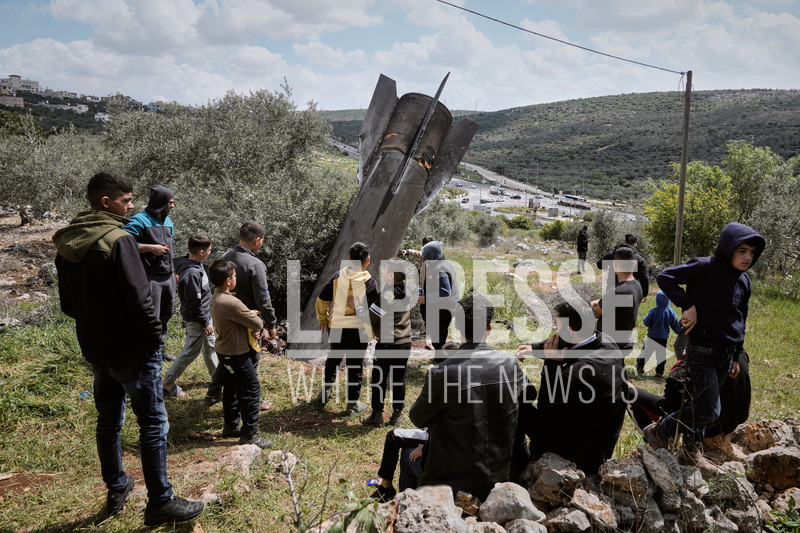 Frammento di un missile iraniano caduto nel villaggio di Kifl Haris in Cisgiordania