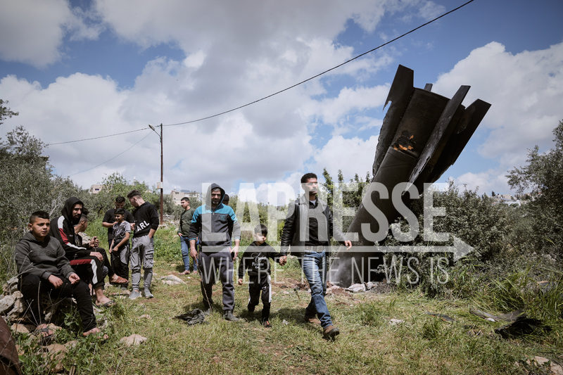 Frammento di un missile iraniano caduto nel villaggio di Kifl Haris in Cisgiordania