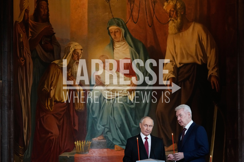 Putin alla celebrazione religiosa ortodossa di Pasqua nella Cattedrale di Cristo Salvatore a Mosca