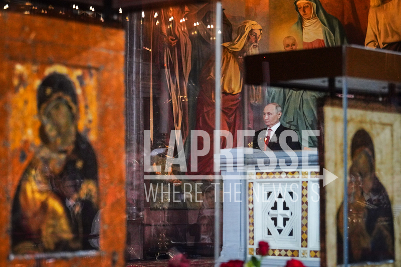 Putin alla celebrazione religiosa della Pasqua ortodossa nella Cattedrale di Cristo Salvatore a Mosca