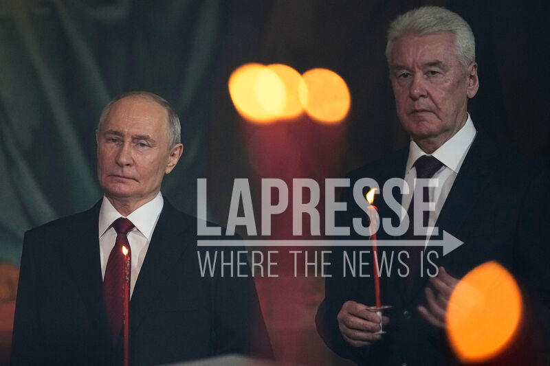 Putin alla celebrazione religiosa della Pasqua ortodossa nella Cattedrale di Cristo Salvatore a Mosca