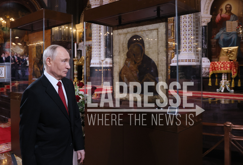 Putin alla celebrazione religiosa della Pasqua ortodossa nella Cattedrale di Cristo Salvatore a Mosca