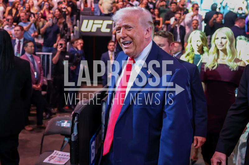 President Donald Trump attends UFC 327 at Kaseya Center, Saturday, April 11, 2026, in Miami. (Tasos Katopodis/Pool via AP)