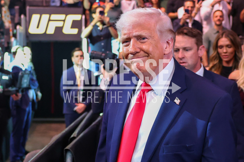 President Donald Trump attends UFC 327 at Kaseya Center, Saturday, April 11, 2026, in Miami. (Tasos Katopodis/Pool via AP)